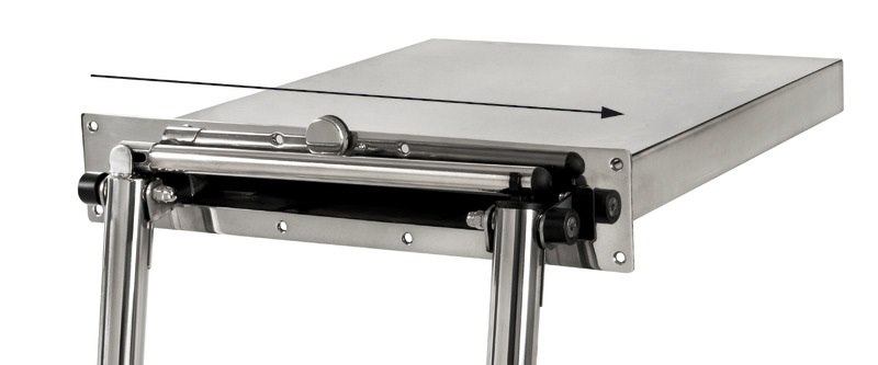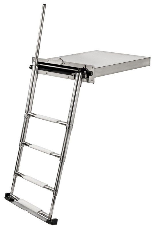 Scaletta telescopica a 4 gradini con maniglia di risalita integrata per facilitare la risalita a bordo. Pattini e guide in acciaio inox 316, scorrimento su cuscinetti in derlyn, meccanica di precisione migliorata. Da installare sopra la linea di galleggiamento con cassonetto contenitivo con drenaggio. Box non stagno. Realizzata da Douglas Marine. Made in Italy. Gradini 4 - Lunghezza 1156 mm. - Frontalino 55 x 95 mm. .