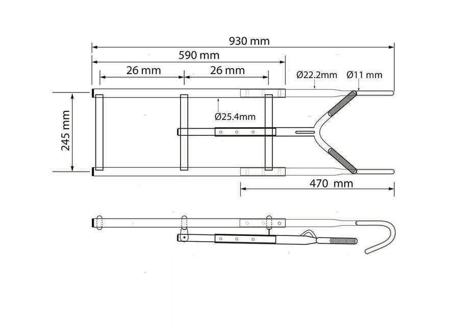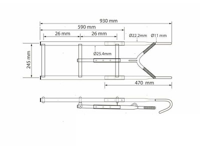 Modello a 5 gradini. Lunghezza totale ( compreso archi ) 138 cm. - Larghezza totale 28 cm. - Tubo inox da Ø 25 mm. .