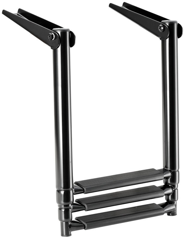 Scaletta telescopica in acciaio inox versione Black Line colore nero. Tramite un moderno processo industriale le scalette in acciaio inox vengono ricoperte in colore nero. Il processo è garantito 500 h di nebbia salina.
