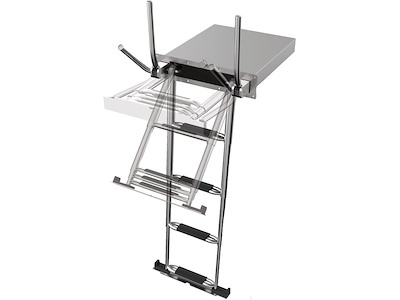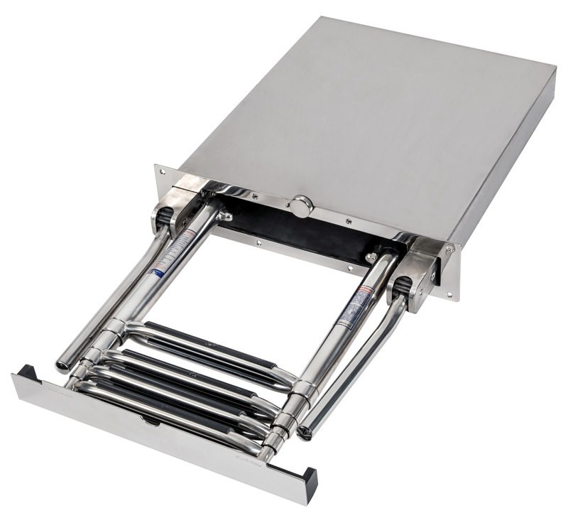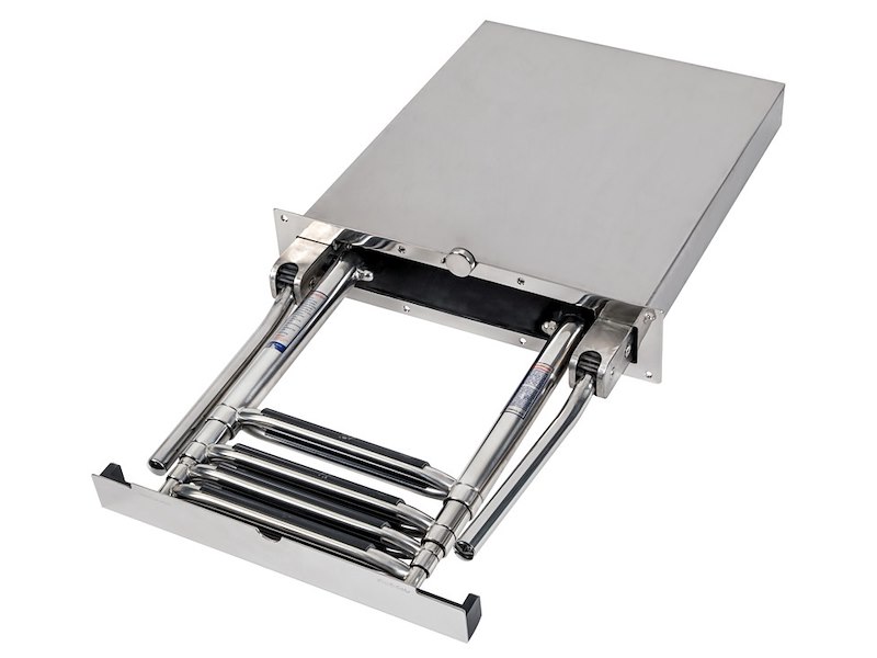 Scaletta telescopica ad incasso in acciaio inox AISI 316 progettata per garantire praticità, robustezza e sicurezza.