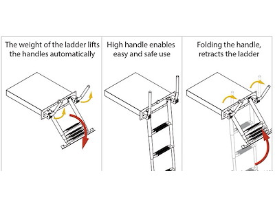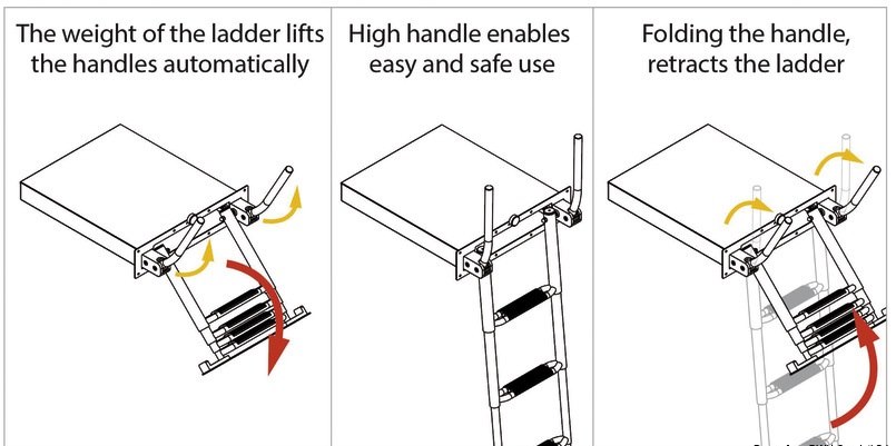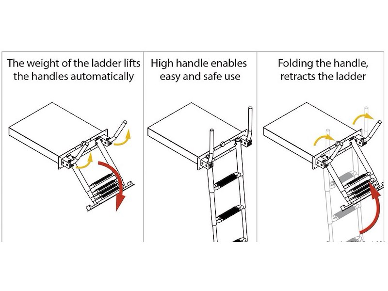 - Maniglie di risalita integrate: Queste maniglie si alzano e abbassano automaticamente ruotando la scaletta, facilitando l'accesso senza necessità di operazioni manuali complicate.
