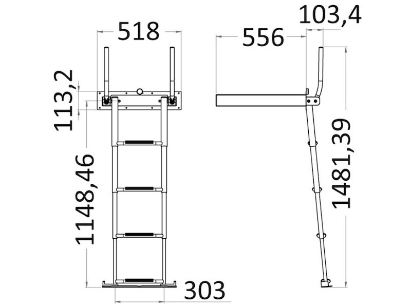 - Lunghezza (aperta): 1481 mm, che consente una discesa sicura e confortevole.