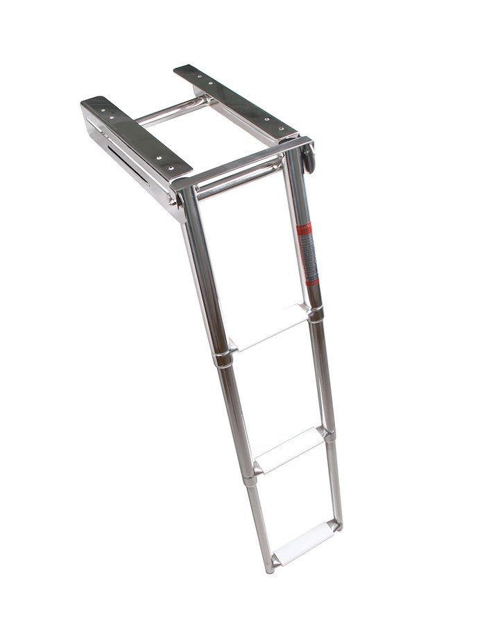 Scaletta marina telescopica barca a scomparsa con guida di scorrimento per applicazione sotto plancetta. Realizzate in acciaio inox . Gradini con profilo antiscivolo. Completa di fermo di sicurezza.