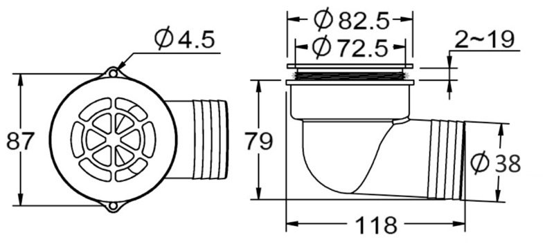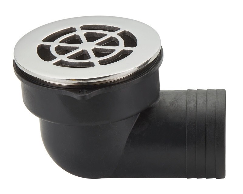 Scarichi pozzetto 90° con non-ritorno. Corpo in fibra acetilica rinforzata. Testa in acciaio inox 316 e flap antireflusso. Ø testa 87 mm.