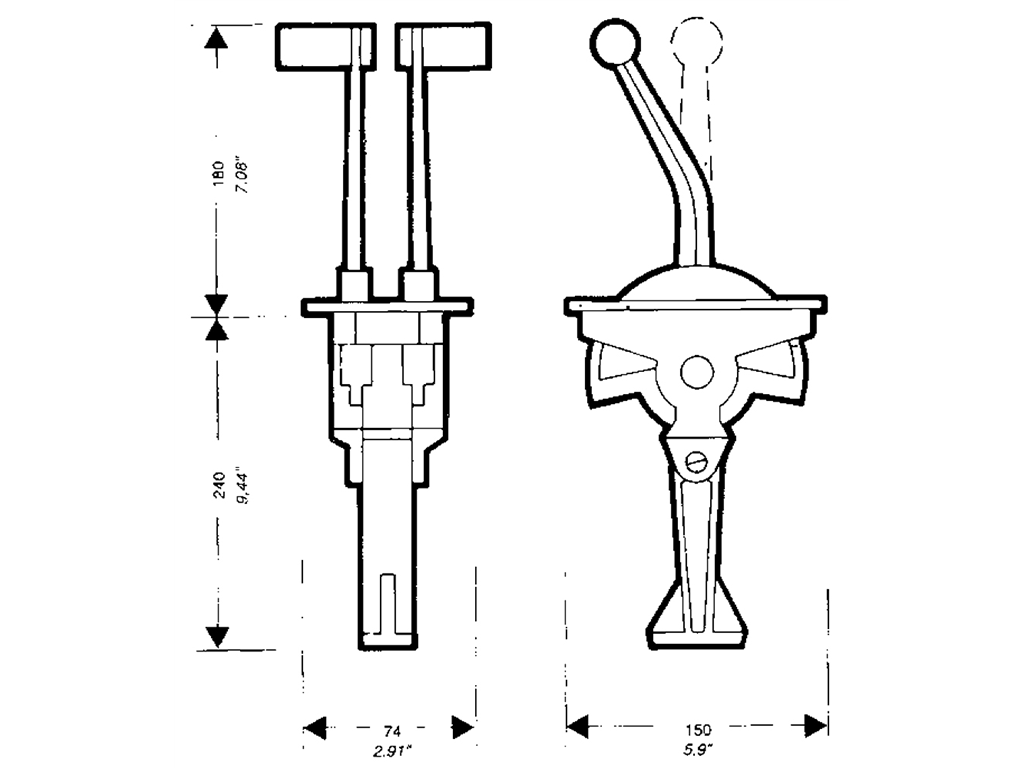 La leva dell’acceleratore è dotata di frizione e quella dell’invertitore di scatti per avvertire correttamente la posizione di marcia avanti, folle e marcia indietro. Sia la frizione che gli scatti sono inseribili e regolabili dall’esterno.