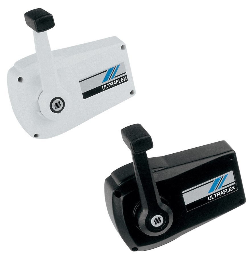 Scatola di comando monoleva per barca Ultraflex B89 colore avorio o B90 colore nero. Scatola a doppia azione per il controlle del gas e dell'invertitore. Adatto a qualsiasi tipo di imbarcazione con motore fuoribordo, entrobordo o con piede poppiero. Adatto a qualsiasi tipo di imbarcazione con motore fuoribordo, entrobordo o con piede poppiero. Rende più facile e sicura la guida evitando automaticamente l'innesto dell'invertitore se il gas non è al minimo. Può esere installata orizzontalmente, verticalmente a destra o a sinistra. Realizzata in alluminio pressofuso e verniciato.