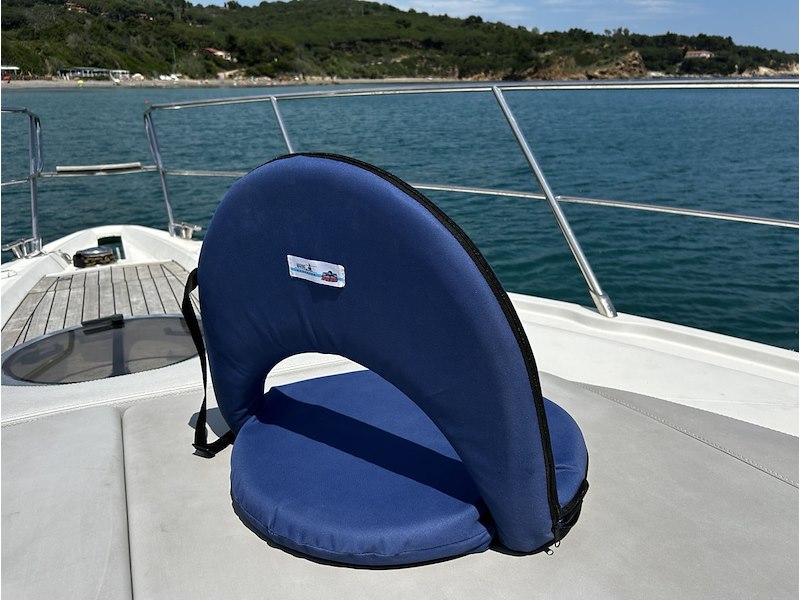 Sedile reclinabile e regolabile. Grazie alla cerniera interna a 6 livelli di regolazione, il sedile può essere reclinato in diverse posizioni. In ciascuna delle posizioni garantisce un ottimo supporto per la schiena, senza sbilanciarsi. Il cuscino può essere utilizzato su qualsiasi superficie senza il rischio che scivoli via. Realizzato in schiuma poliuretanica rivestita. Dimensioni 78 x 54 x 7 cm. Colore blu.