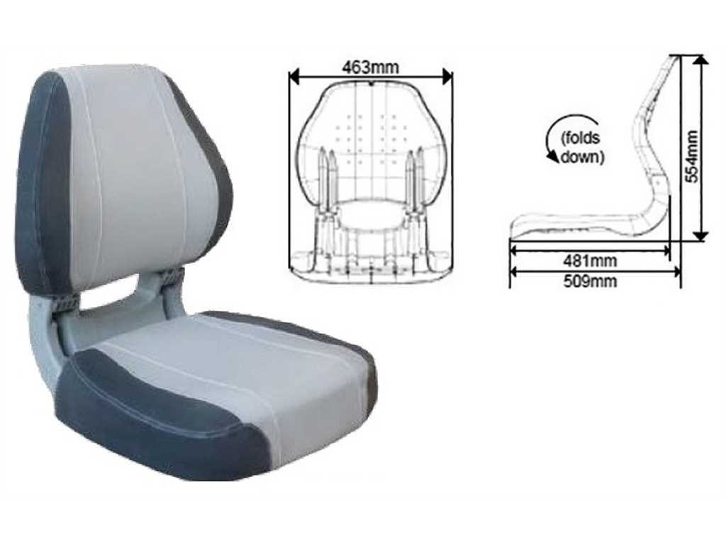 Schienale ribaltabile con blocco. Schiuma interna ad alta densità. Rivestimento UV resistente. Fori di fissaggio inferiori con interasse standard.