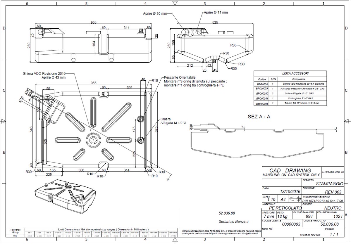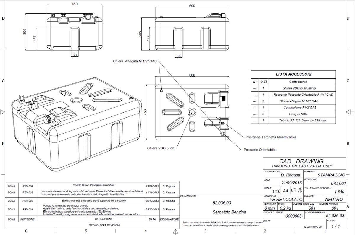 Serbatoio per carburante per barca in polietilene reticolato, progettato per soddisfare standard di sicurezza e qualità.