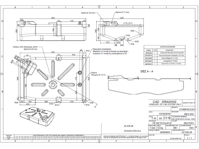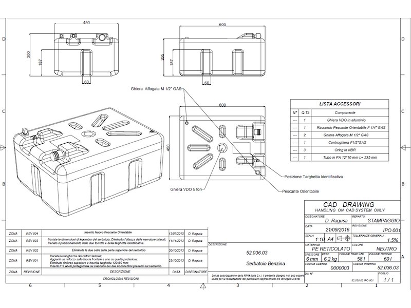 Serbatoio benzina in polietilene reticolato - 60 lt