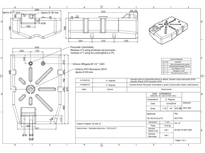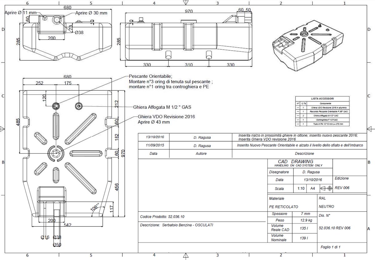 - Accessori: Completi di pescante in ottone per una migliore gestione del carburante.