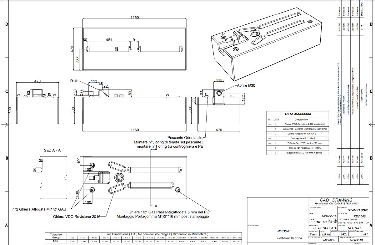 Specifiche del serbatoio carburante in polietilene da 142 litri: