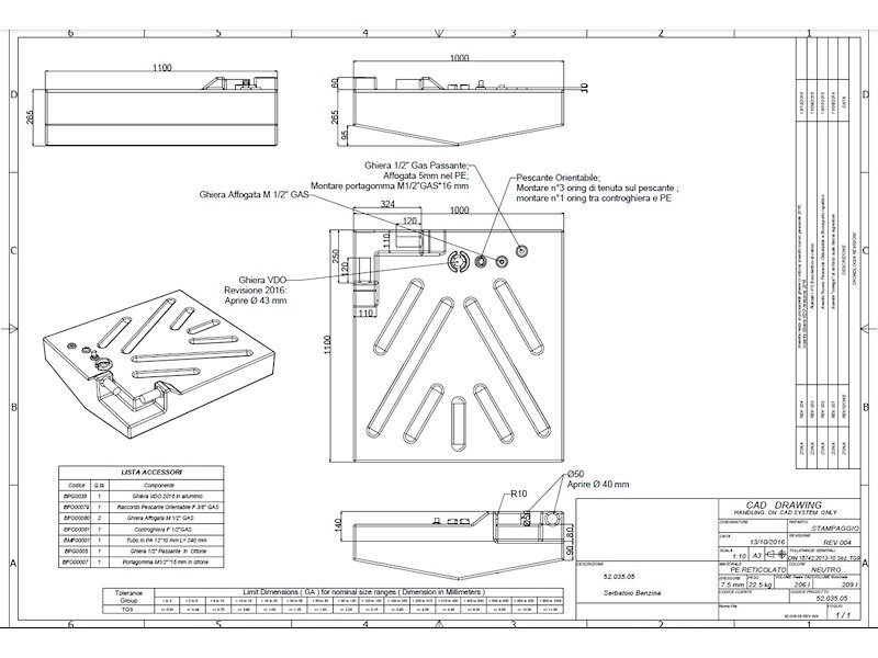 - Accessori inclusi: Pescante in ottone, protezione galleggiante, frangiflutti (ove necessario).