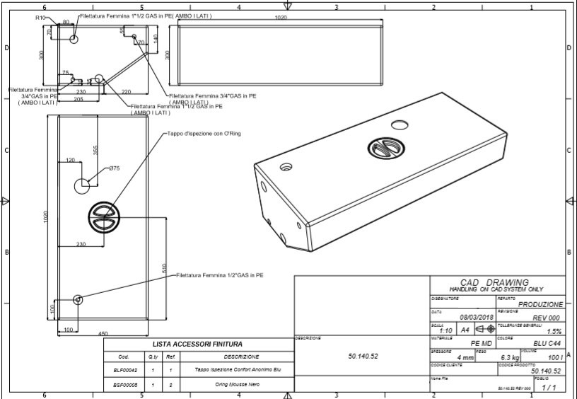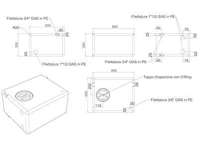 - Design Ottimizzato: Ogni serbatoio è dotato di ingressi femmina per carico, scarico e sfiato (da 3/4" e 1 1/2"), facili da usare e sicuri.