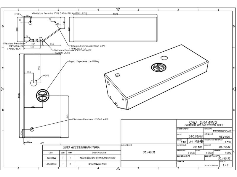 - Legenda raccordi: A = 1" - B = 1"1/4 - C = 1"1/2 - D=3/4 .
