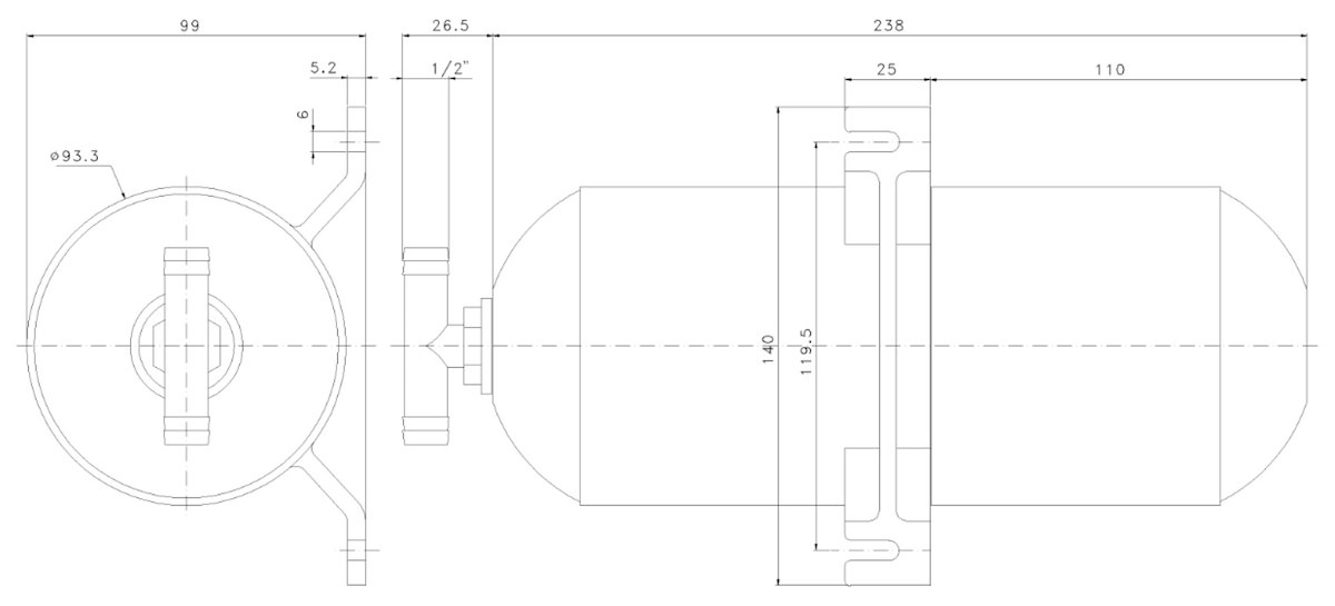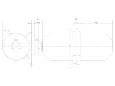 Vaso /serbatoio espansione universale per qualsiasi autoclave. Evita fastidiose pulsazioni che emette l'autoclave quando il rubinetto è al minimo. Capacità 1 litro. Lunghezza 24 cm. .