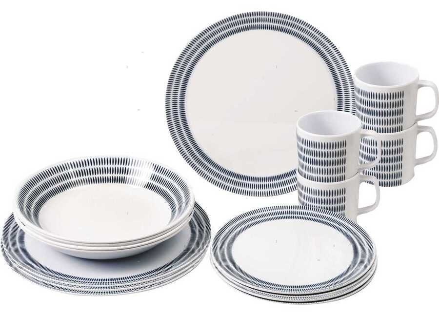 Bluebay servizio tavola da 16 pezzi in Melamina infrangibile per uso alimentare.