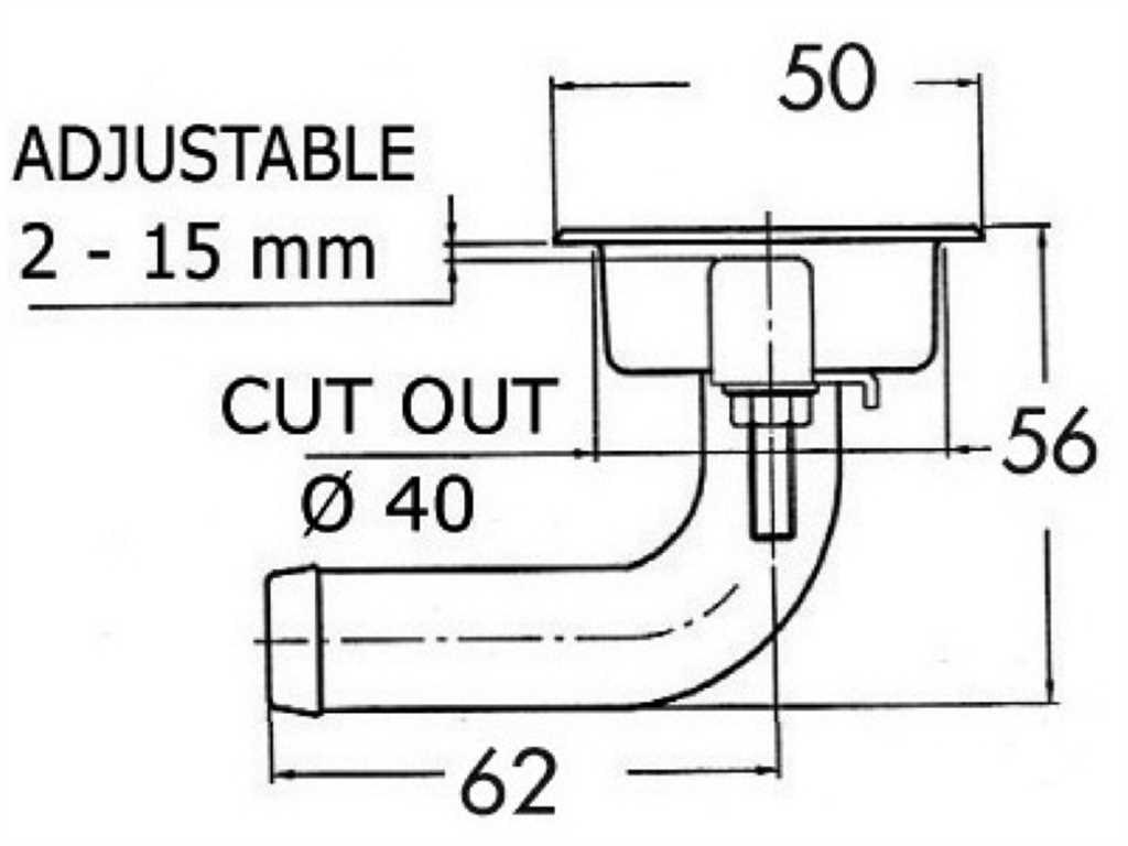 Sfiato carburante realizzato in acciaio inox. Conforme norme RINA e CE. Portagomma da 16 mm. Testa Ø 50 mm. Foro di montaggio Ø 40 mm. .