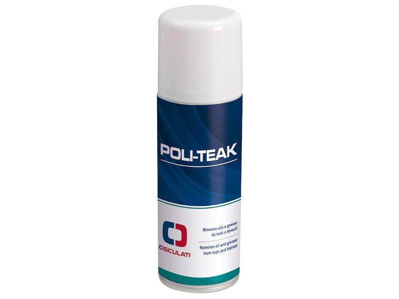 Speciale smacchiatore spray per coperte in teak. Basta spruzzarlo sulla macchia ed attendere l’evaporazione del solvente, dopo di che basta spazzolare o sciacquare il residuo bianco che resta sopra il teak, e la coperta resterà perfettamente pulita.