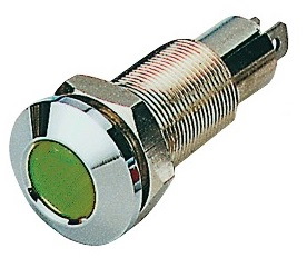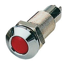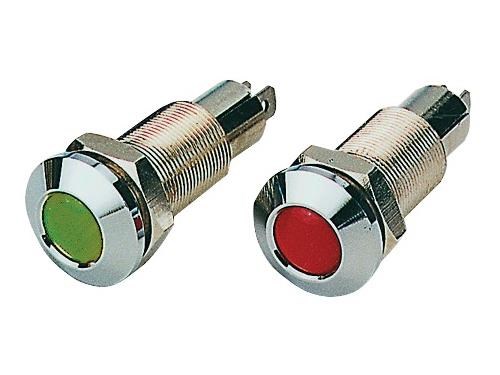Spia luminosa da cruscotto. Costruita in ottone cromato. Foro da praticare Ø 18 mm. .