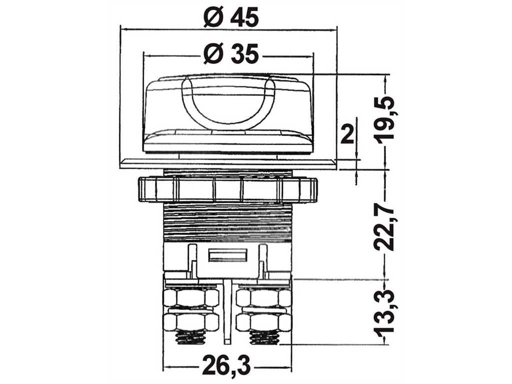 Dimensioni: Ø flangia 45 mm, Ø collo 26 mm, collo utile 11 mm.