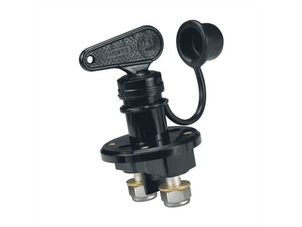 Staccabatterie completo di chiave estraibile. Contatti in rame, molle in acciaio inox e terminali in ottone. Adatto per 6, 12 e 24 Volt.