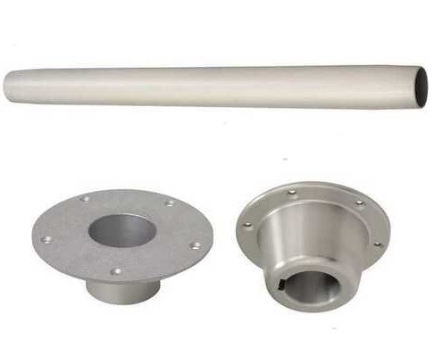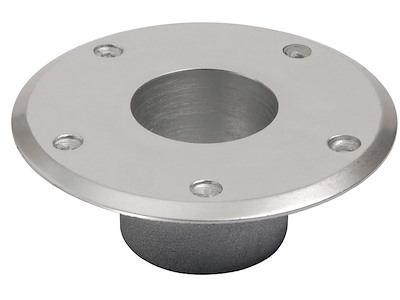 Supporto scomponibile per tavoli serie Premium. Costruzione di ottima qualità. Finitura della colonna, base e testa satinata. Fabbricato in lega leggera anodizzata.