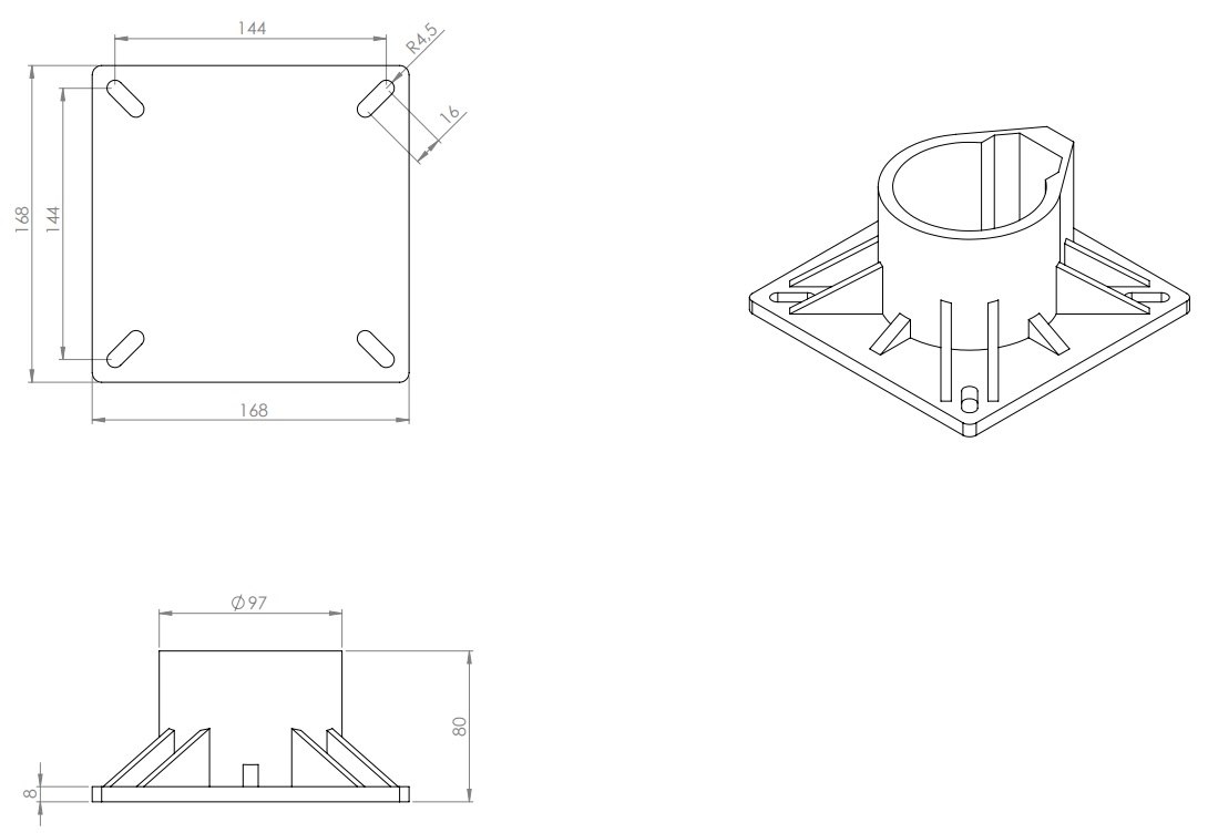 Supporto sedile girevole costruitio il alluminio anodizzato. Completo di boccole in nylon antifrizione. Finitura molto accurata. Tubo con anodizzazione a specchio. Base Ø: 230 mm. .