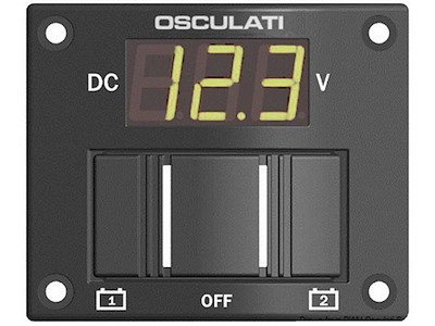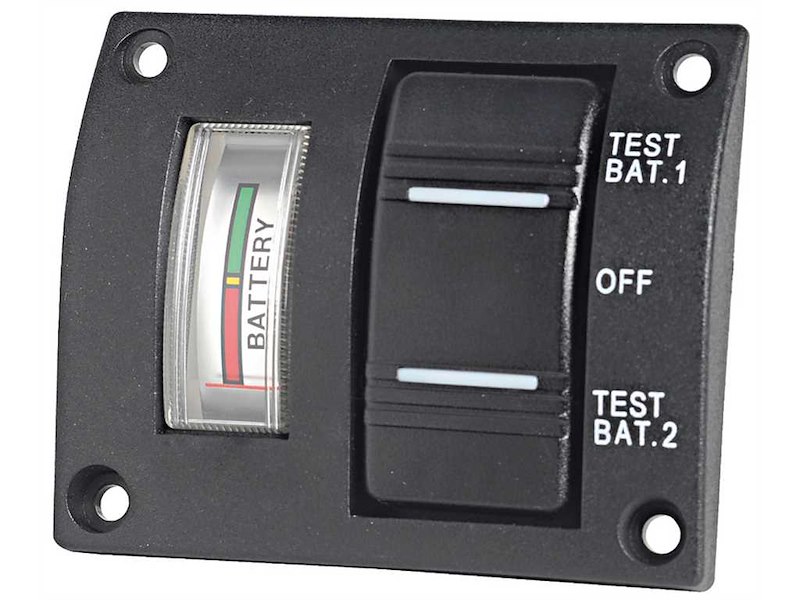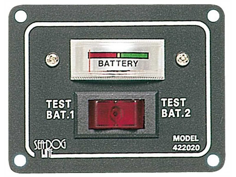 Pannello elettrico in lega leggera verniciata con test di stato di carica delle batterie.