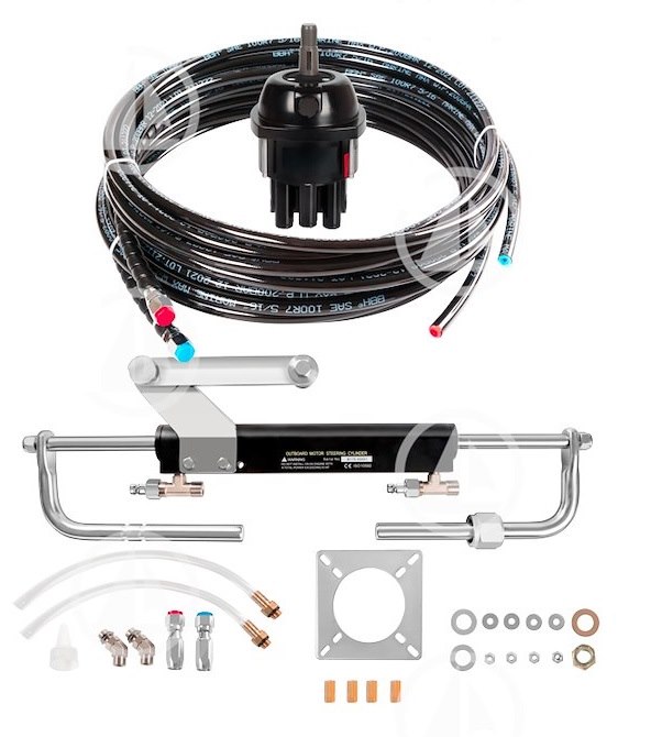 Kit completo composto da cilindro, pompa idraulica, tubazioni e olio. Progettata per garantire manovrabilità fluida e precisione di guida, questa timoneria è ideale per motori fino a 90 cavalli di potenza. Il sistema anti feed-back integrato assicura un controllo stabile, riducendo il ritorno del timone durante la navigazione.