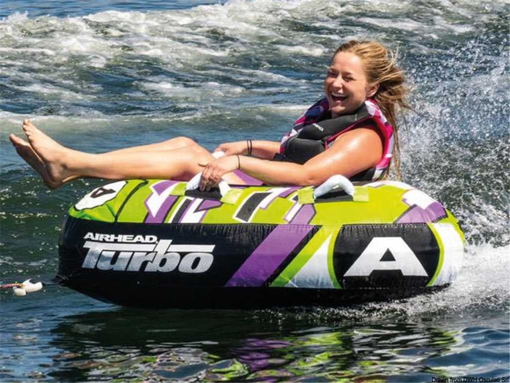 Gonfiabile da traino dalla forma triangolare progettato per l’alta velocità. La Kwik Connect permette di collegare facilmente la cima da traino. Il fondo autodrenante e le 4 maniglie in neoprene con protezioni per le nocche garantiscono comodità e sicurezza. Dotato di speciale valvola per gonfiaggio/sgonfiaggio rapido.