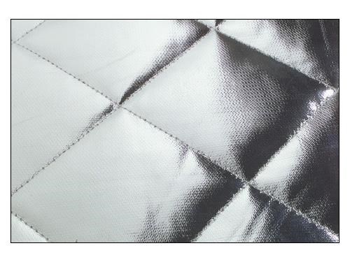 Autoestinguente DIN 4102. E' un materassino di feltro di fibra di vetro agugliato di tipo "E", accoppiato tramite trapuntatura a losanga a due tessuti di vetro da 400 g, di cui uno alluminizzato. Di grande effetto estetico, è capace di sopportare sollecitazioni meccaniche elevate. Particolarmente indicato come isolante termoacustico.