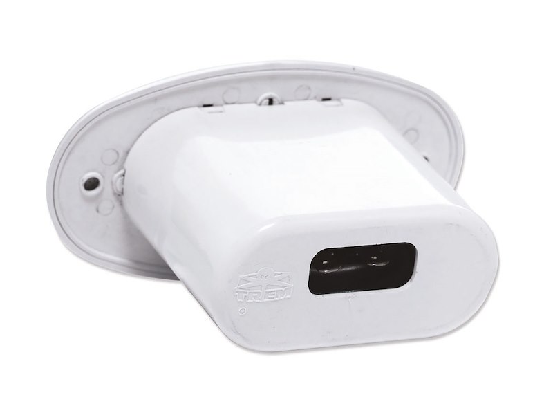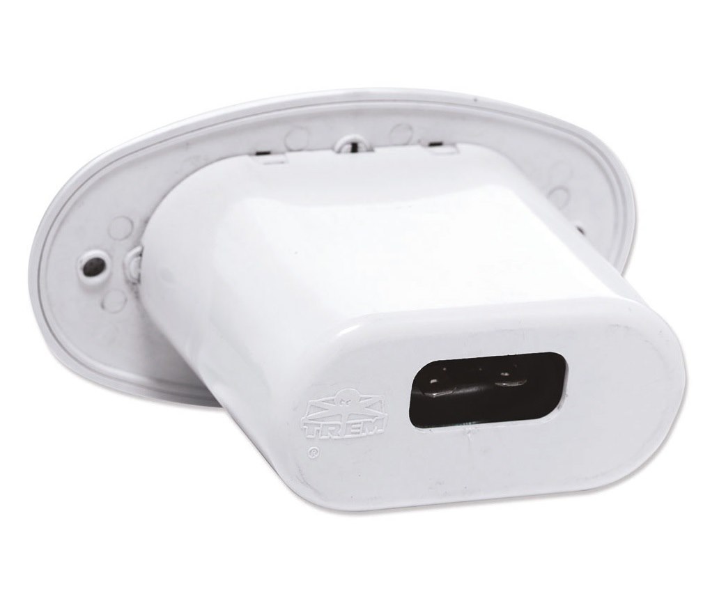 Tromba elettrica ad incasso. Completa di griglia di protezione in plastica bianca. La griglia si può smontare dal corpo, quindi non è necessario fare il foro grande quanto il corpo tromba.