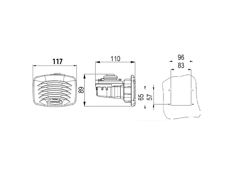 Tromba Marco elettromagnetica ad incasso. Corpo e griglia in ASA bianco resistente ai raggi UV. Alimentazione 12 volt - 5 Amp. - Livello sonoro 108 dB - 400 Hz.