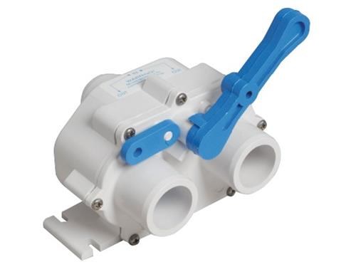 Valvola a Y per servizi igienici . Si può usare per scaricare direttamente in mare o nel serbatoio acque nere. Predisposta per comando a distanza tramite cavo .