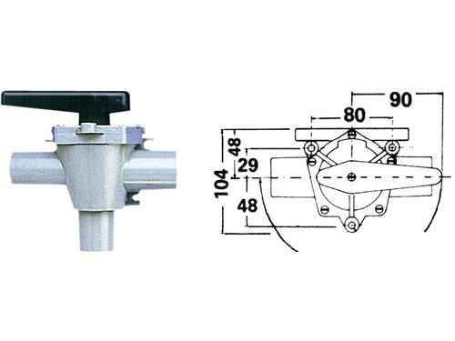 Permette di aprire due separate sentine con una sola pompa (serieMKV) anche se una sentina é asciutta. Altresì indicata per carico acqua in due separati serbatoi, con una sola entrata. Può essere montata a parete oppure dietro paratia.