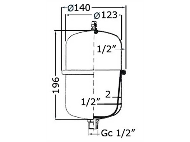 Vasi/serbatoio espansione Volume totale 2 litri. Raccordo da 1/2 . Pressione max d'esercizio 10 bar. Altezza 196 mm. Diametro 130 mm. .