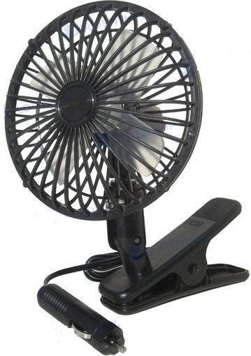 Ventilatore con morsetto e griglia di protezione. Regolabile a 360 gradi. Pale da 127 mm. 2 Velocità. Fissaggio a morsetto. Alimentazione 12 volt.