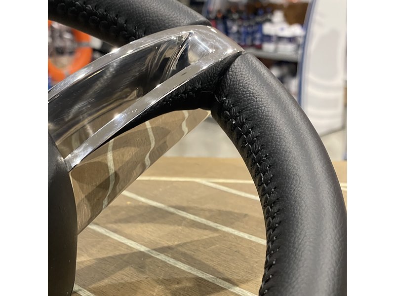 Volante barca Boccanegra prodotto da il Vero Volante Italiano. Volante a 3 razze in acciaio inox 316L, con impugnatura e cover in pelle cucita a mano. Mozzo e lente centrale inclusi. Diametro 350 mm. Cono standard da 3/4 “. Conforme agli standard EN28848 e EN29775 & ABYC P22.