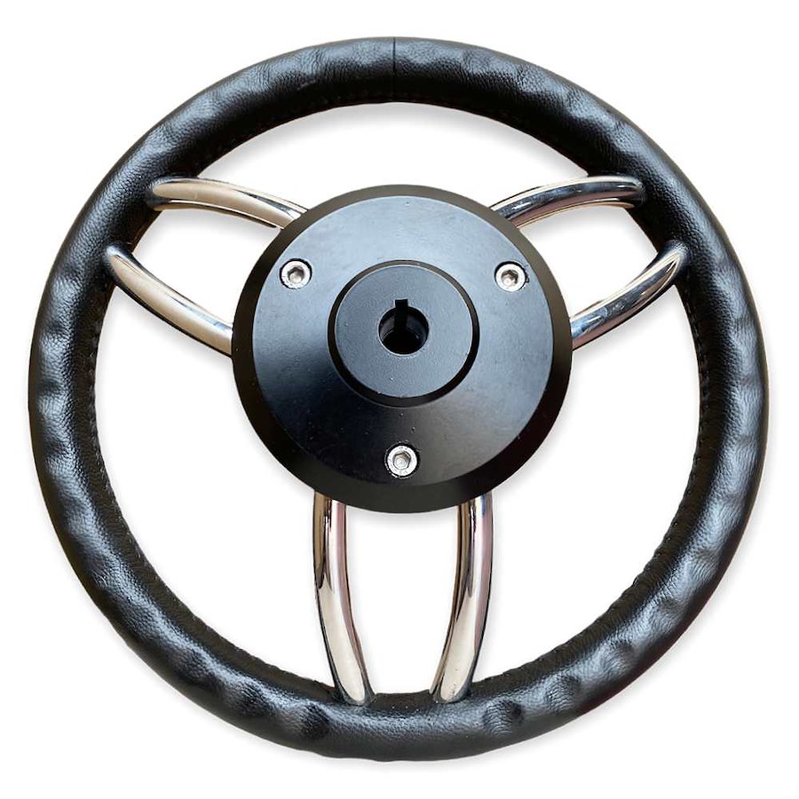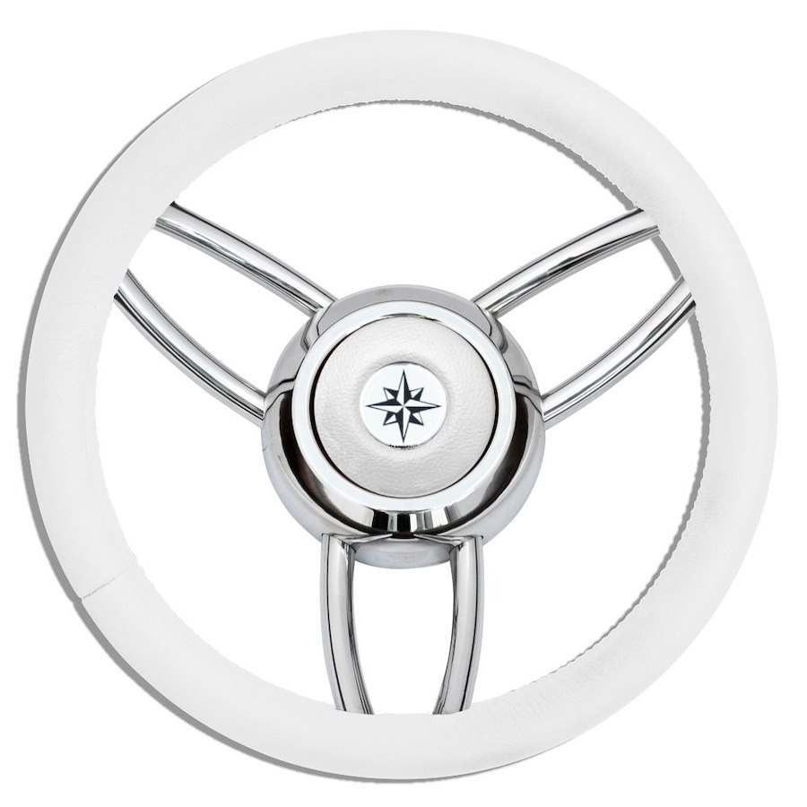 Struttura in acciaio inox lucido: La struttura in acciaio inox lucido assicura un aspetto brillante e una protezione duratura contro la corrosione, mantenendo il volante sempre nuovo anche in ambienti marini.