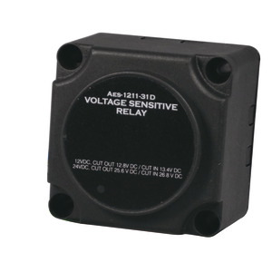 Questo relay consente di caricare simultaneamente due batterie utilizzando un solo alternatore. Durante l'avvio del motore, il Voltage Sensitive Relay rimane aperto finché la batteria di avviamento non raggiunge 13,7 / 27 V. A questo punto, il relay chiude il contatto e inizia a caricare entrambe le batterie. Quando il motore si ferma e il voltaggio scende sotto 12,8 / 25,2 V, il relay apre il contatto, isolando le batterie e prevenendo la scarica della batteria di avviamento. Questo sistema protegge anche l'elettronica di bordo dai picchi di corrente durante il riavvio del motore.