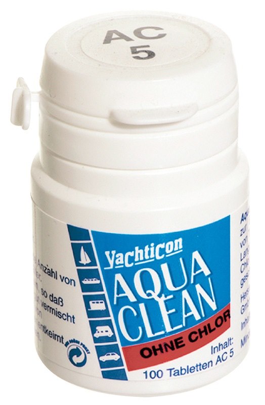 Yachticon Aqua Clean per il trattamento e la conservazione dell’acqua dolce nei serbatoi. Previene la contaminazione fino a sei mesi. A base d’argento, privo di cloro o altre sostanze chimiche, è insapore e inodore, adatto per acqua potabile e non.