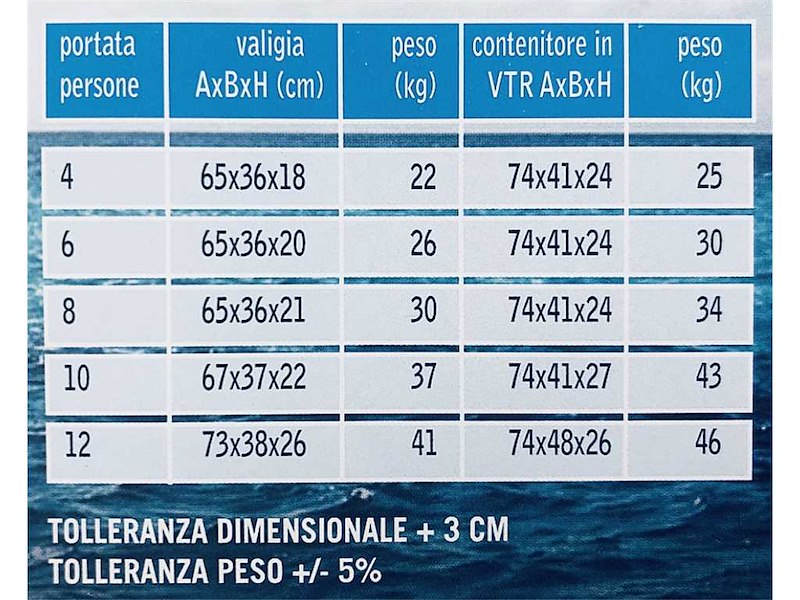 Zattera COMPACT DRY Eurovinil entro le 12 mg. - Container Vtr 6 posti -