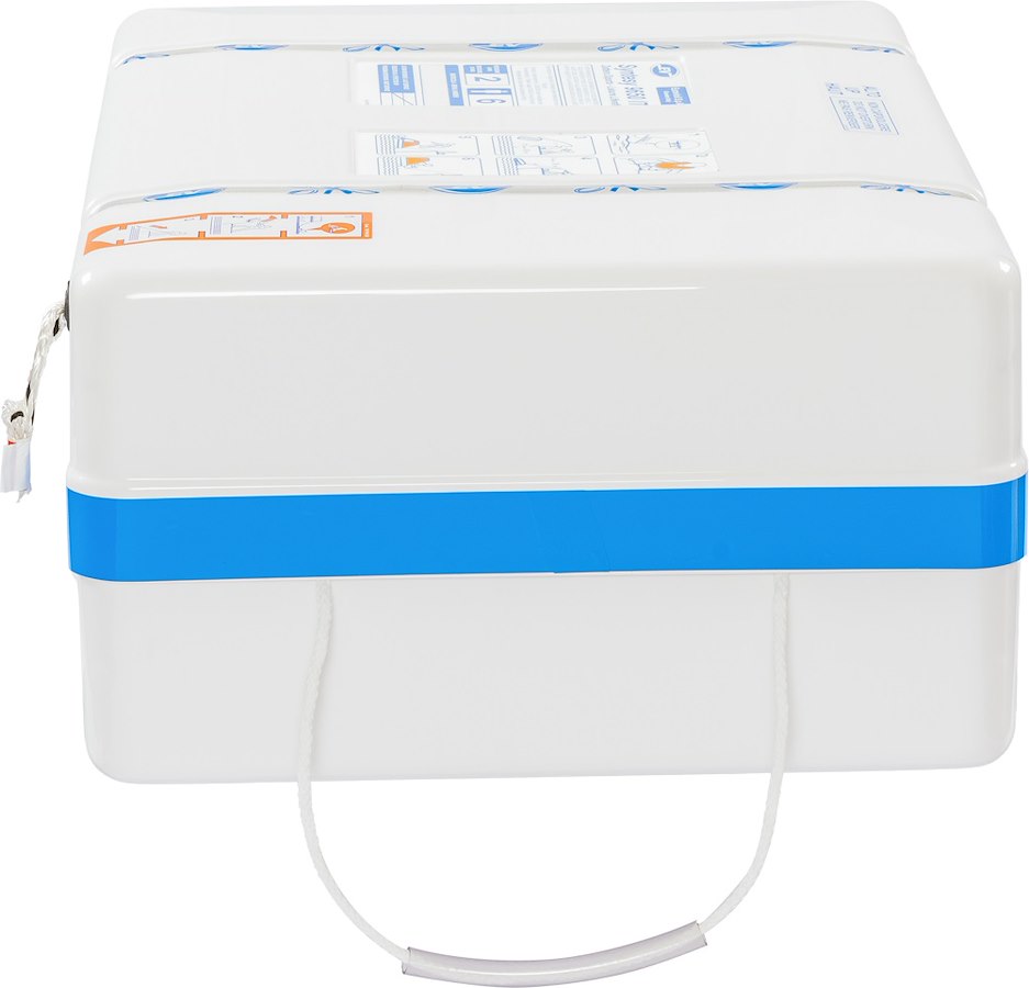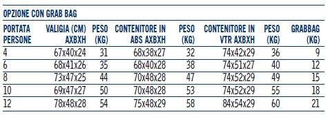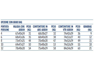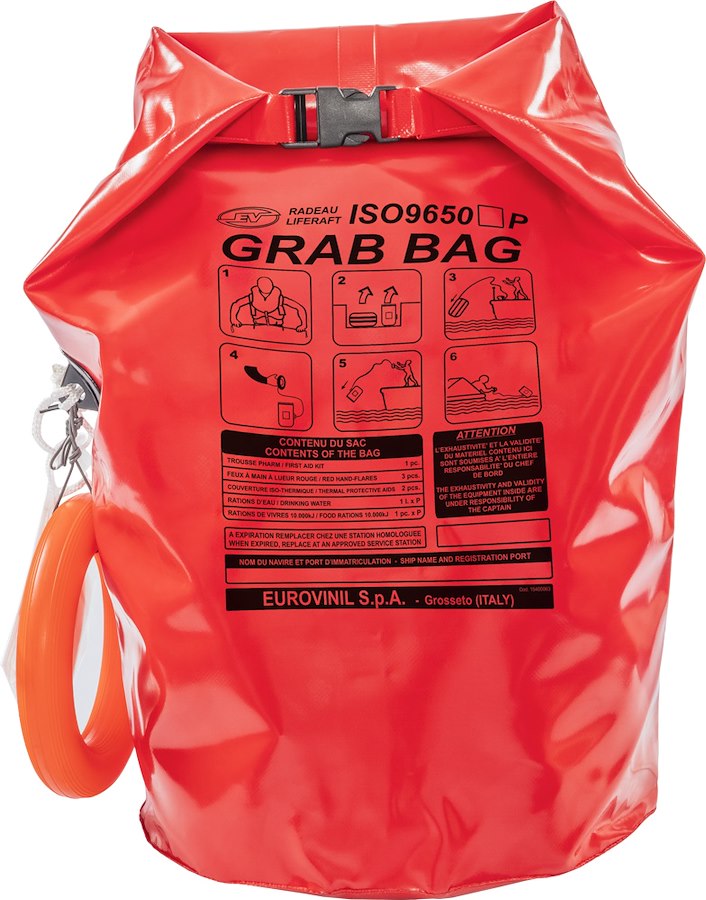 Versione SYNTESY + Grab Bag vanta spazi e pesi più contenuti rispetto la versione tradizionale che permettono una maggiore versatilità di sistemazione a bordo ed utilizzo. La Grab Bag esterna offre inoltre la possibilità di accedere prontamente ad una maggiore riserva di pirotecnici di avvistamento, razioni acqua e viveri anche in caso non fosse possibile o opportuno attivare l’intera zattera.