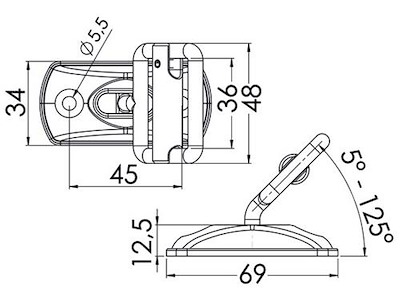 Supporto a cappuccio con perno sfilabile, fissaggio su corrimano