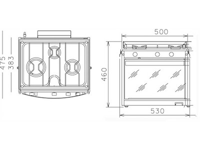 Piano in cristallo a 2 fuochi con lavello in Acciaio Inox